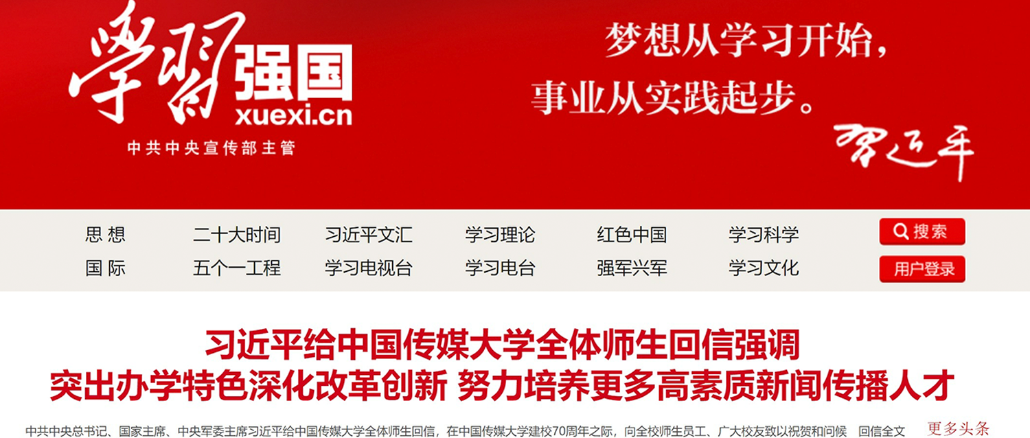 • 習近平給中國傳媒大學全體師生回信